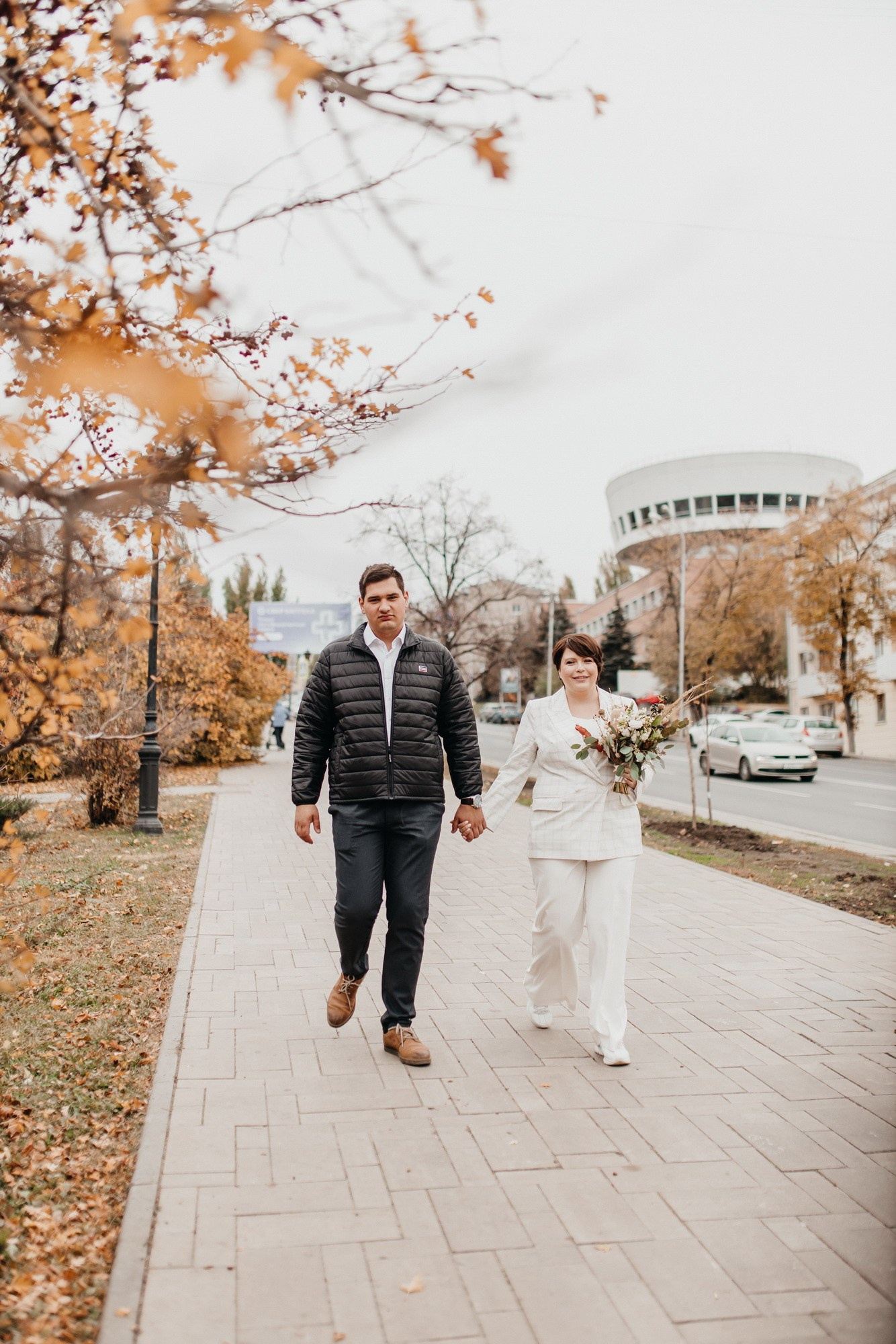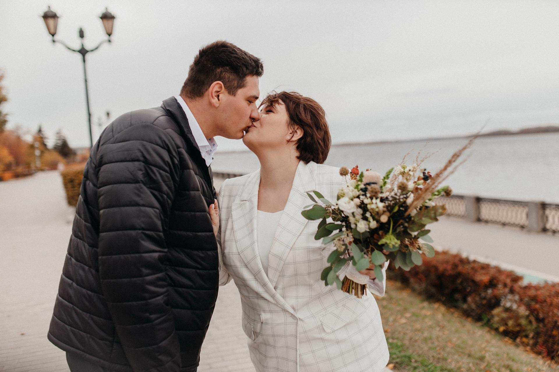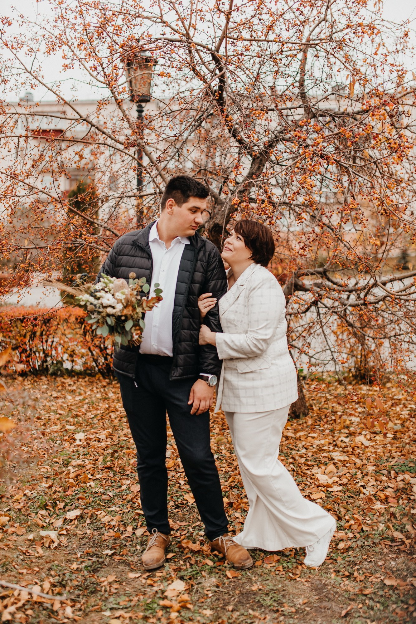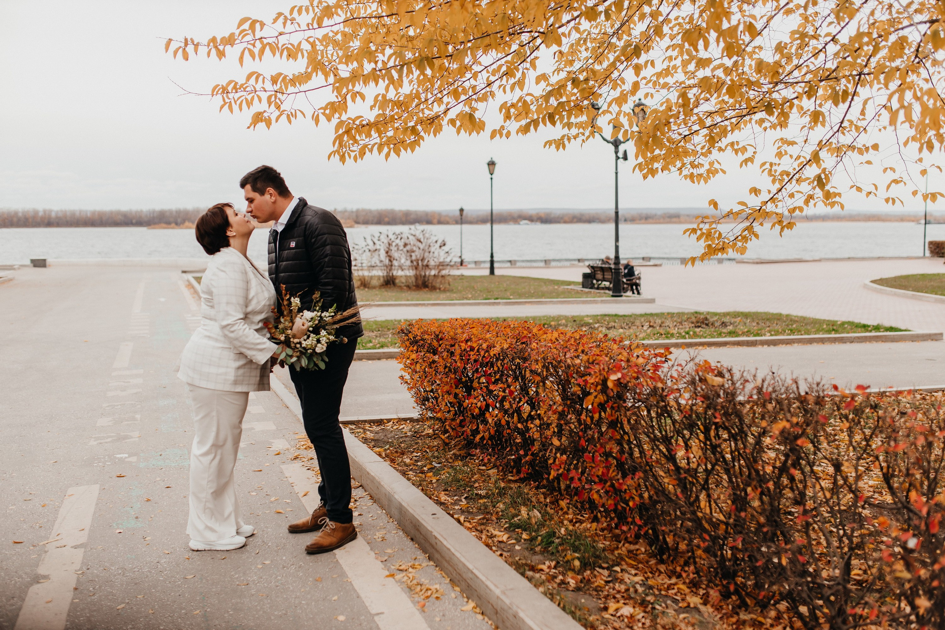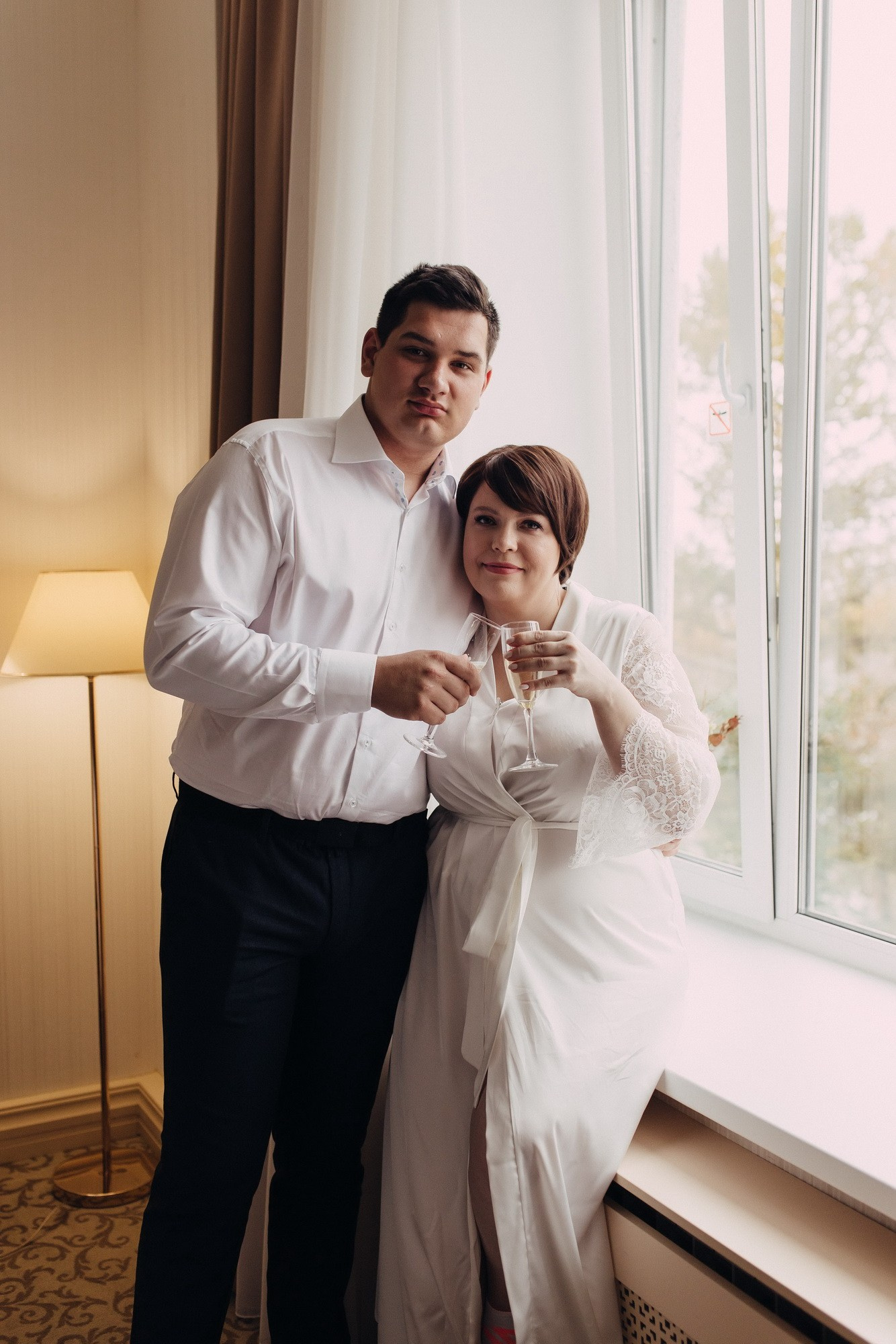Это была камерная свадьба только для двоих. Неспешные сборы в отеле, торжественная роспись и маленькая прогулка по осенней набережной.