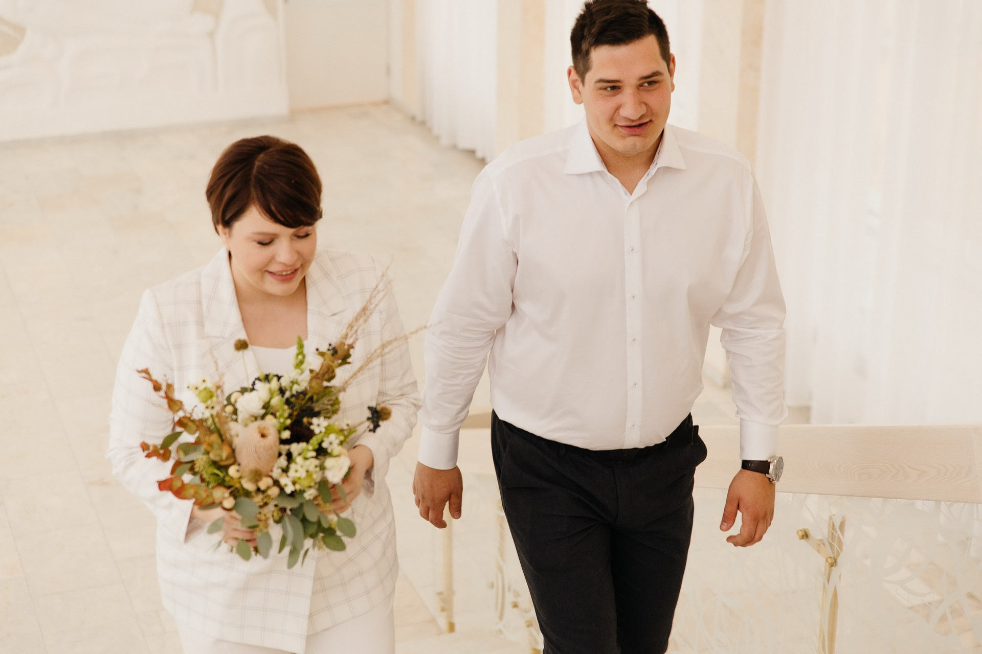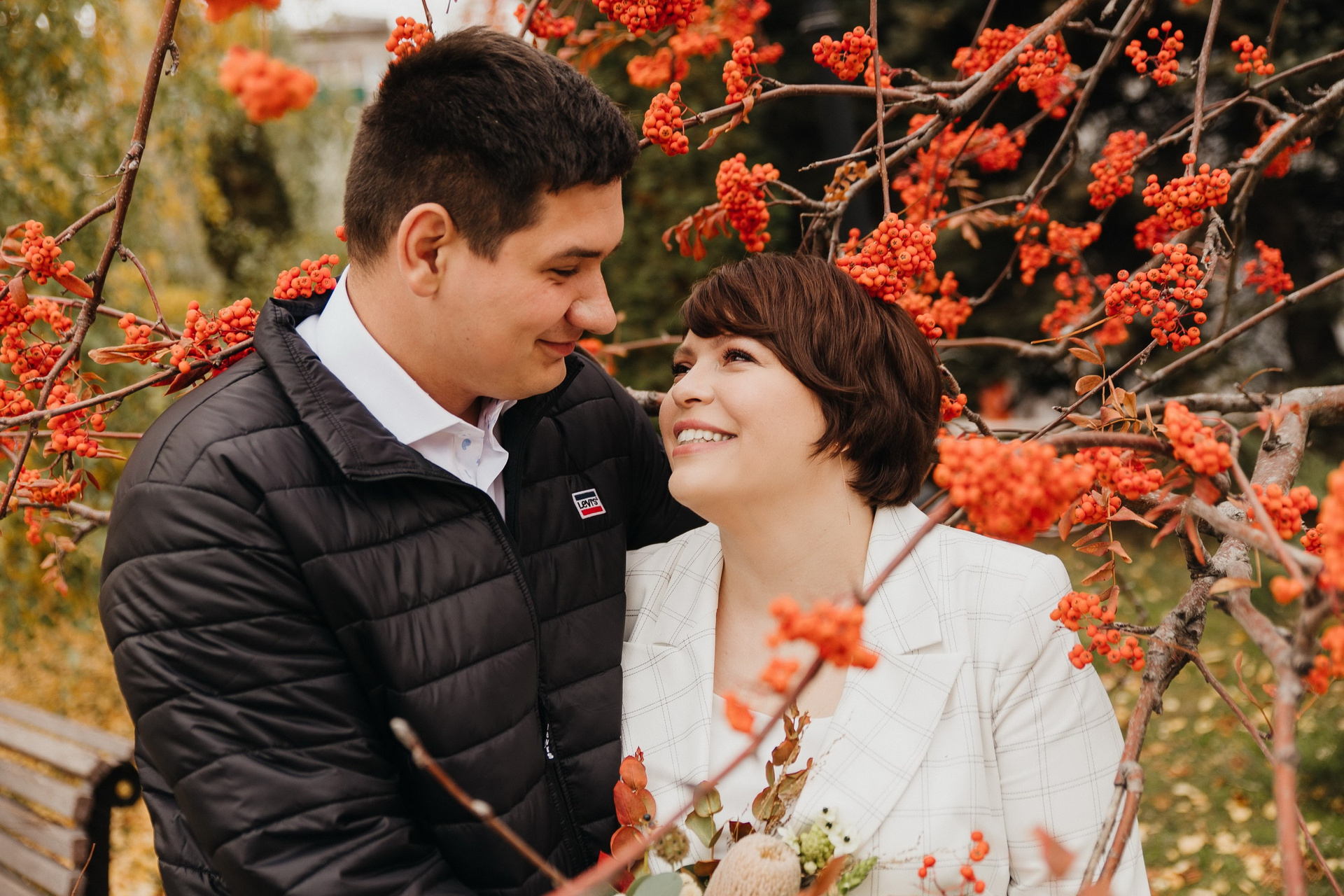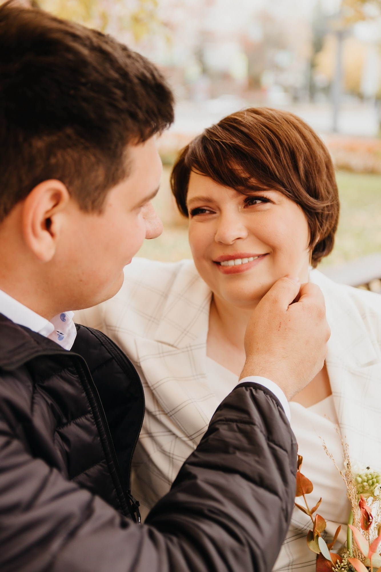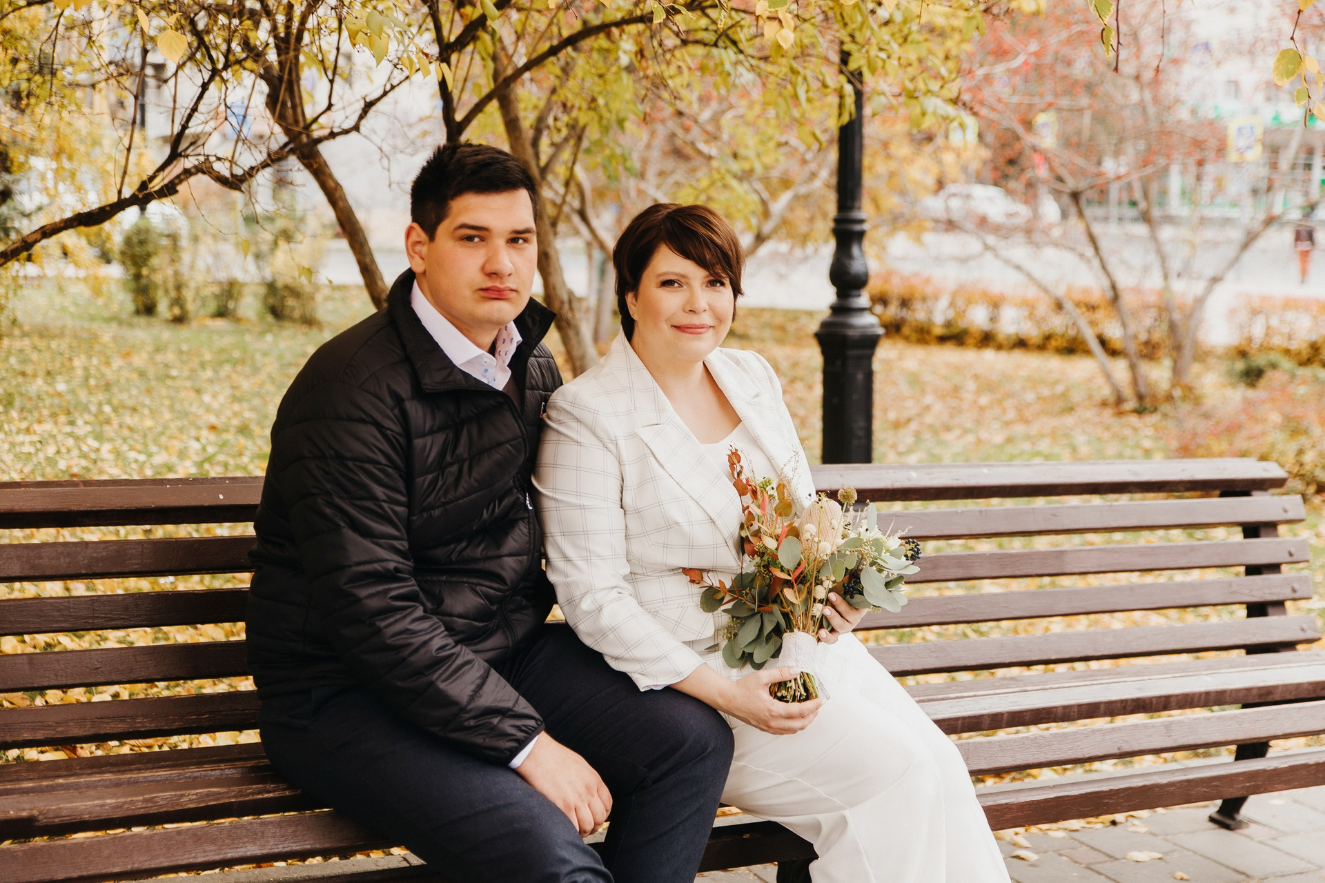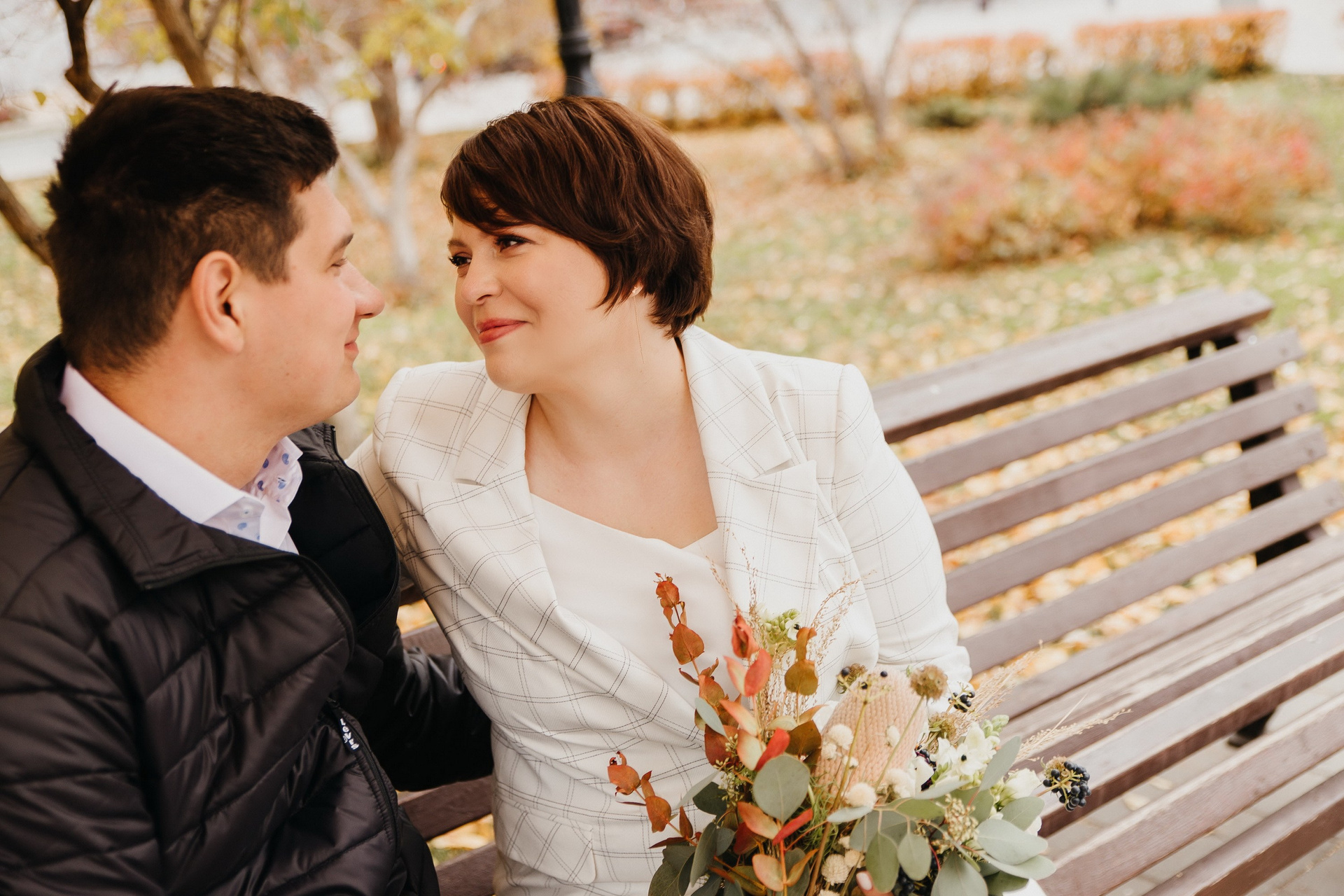 Это была камерная свадьба только для двоих. Неспешные сборы в отеле, торжественная роспись и маленькая прогулка по осенней набережной.