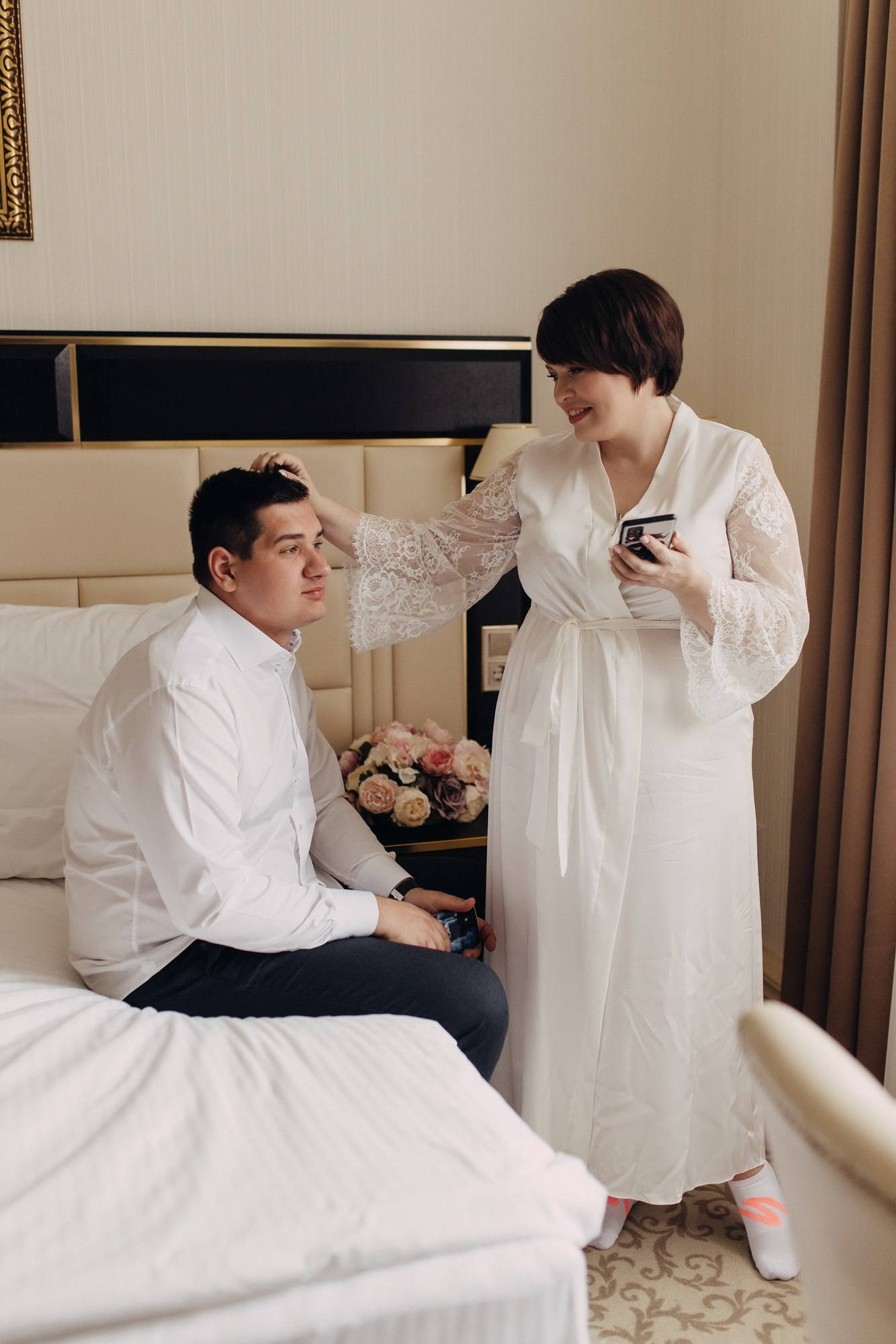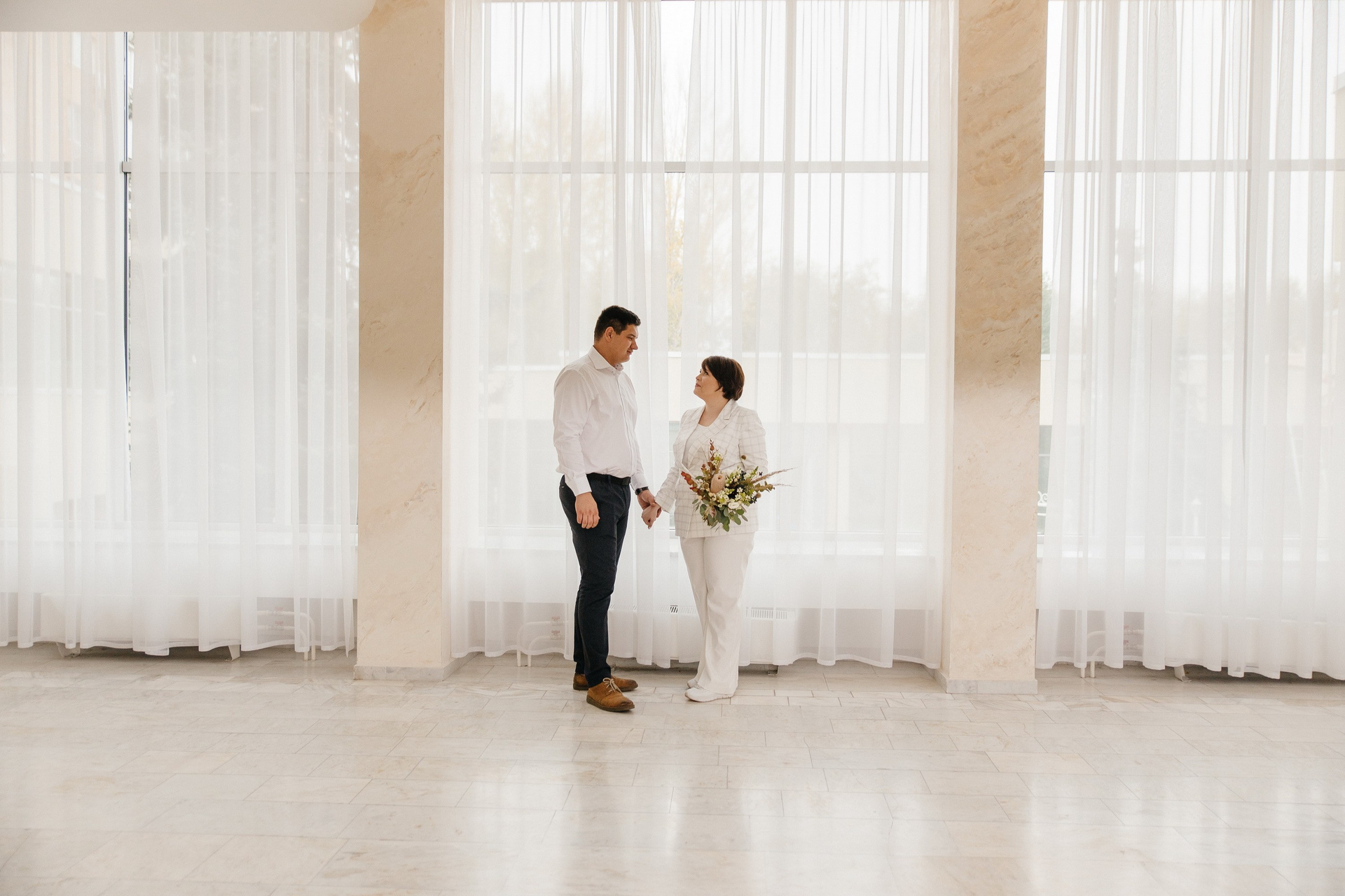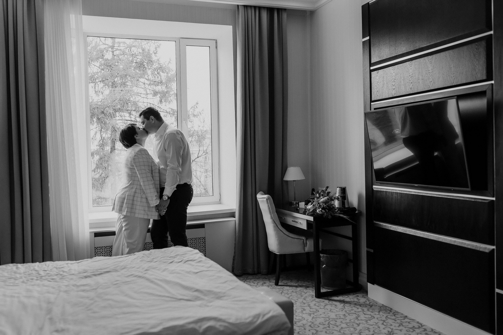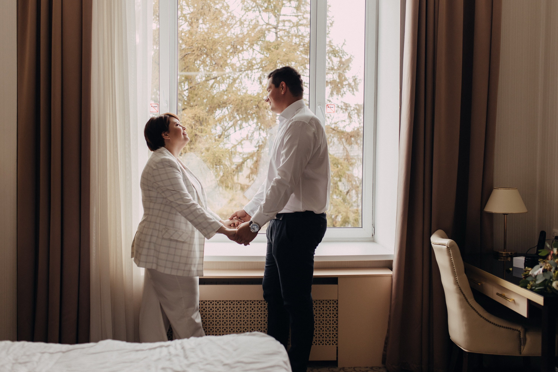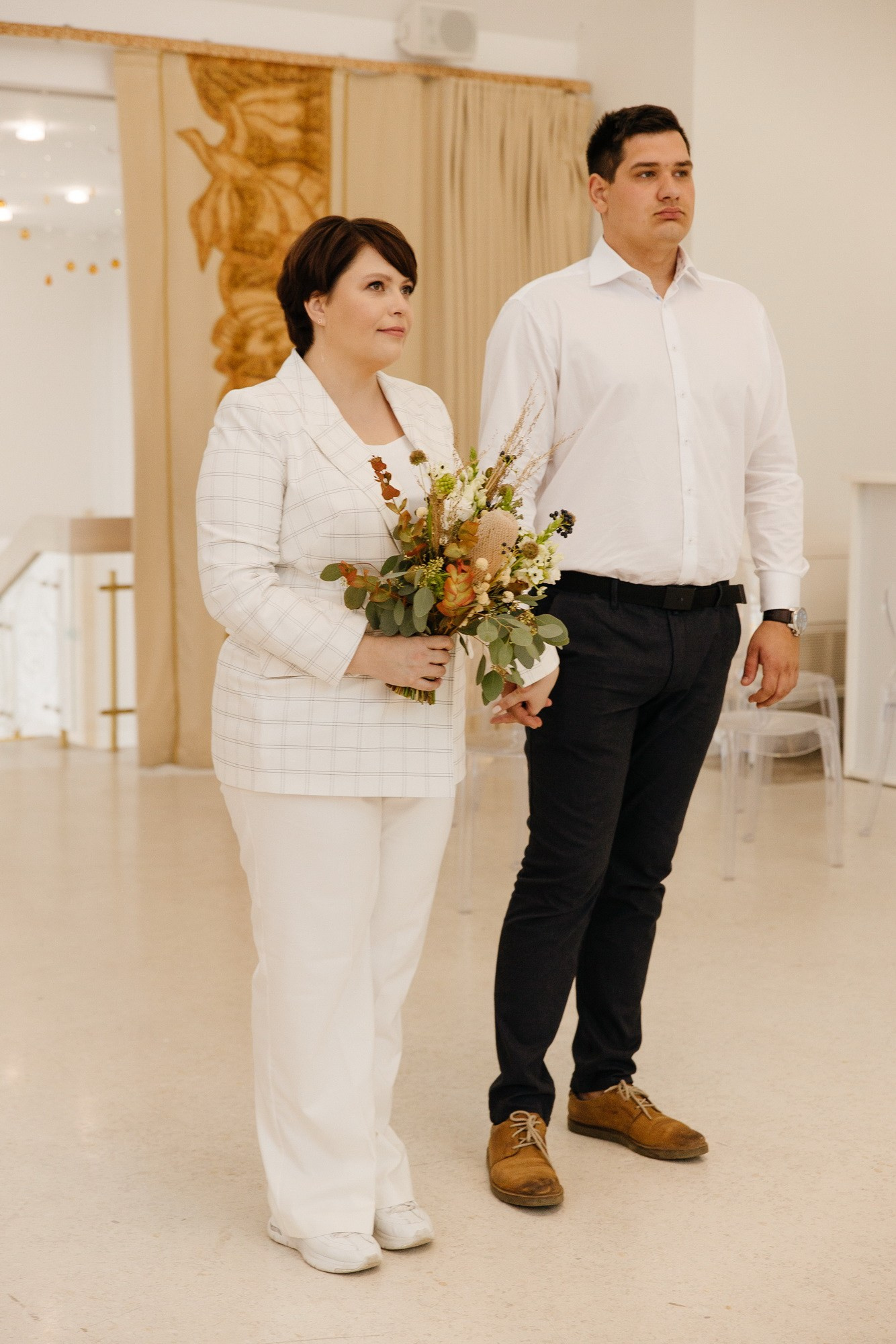 Это была камерная свадьба только для двоих. Неспешные сборы в отеле, торжественная роспись и маленькая прогулка по осенней набережной.