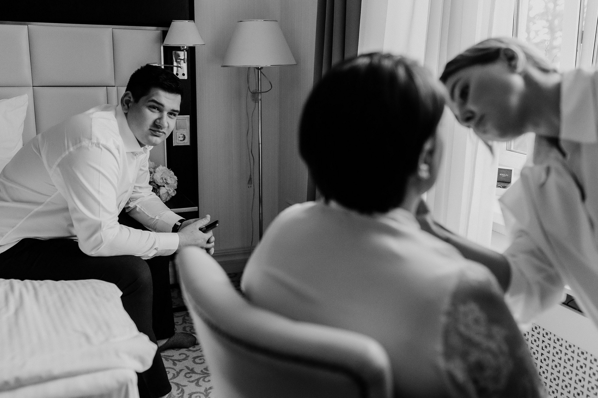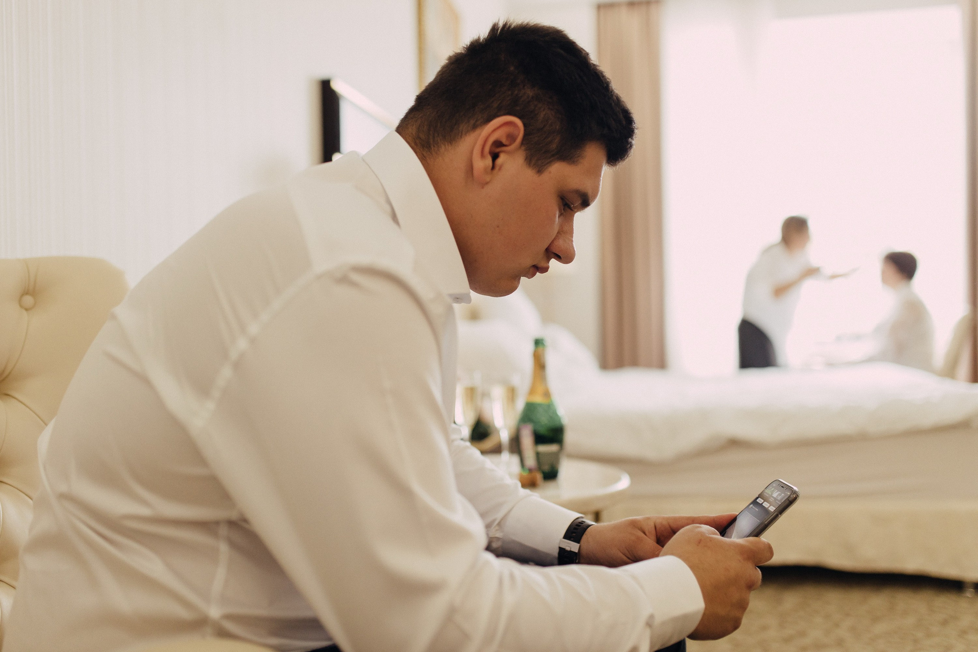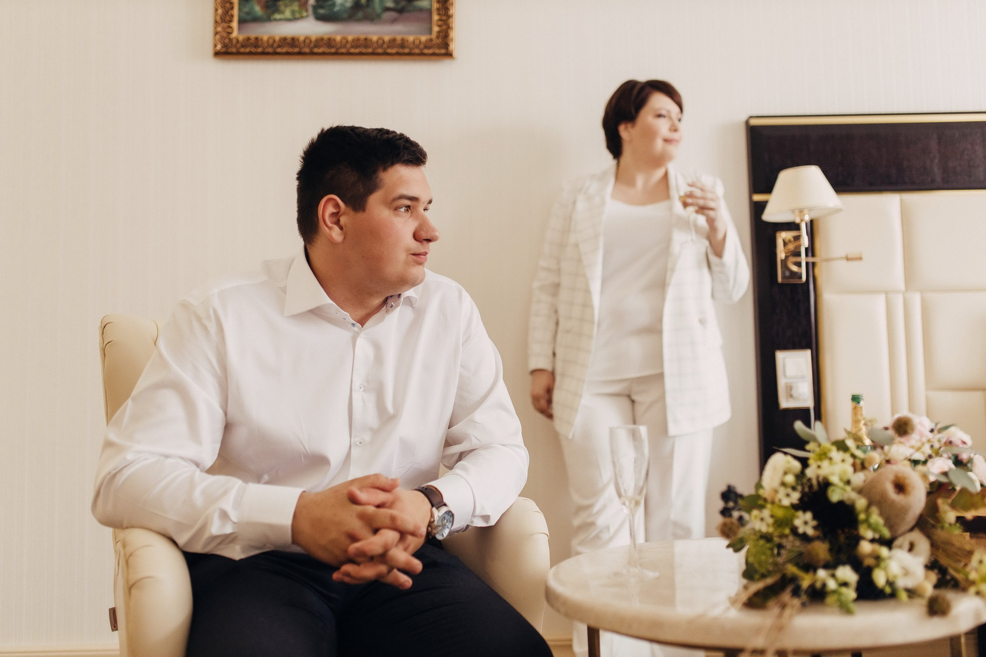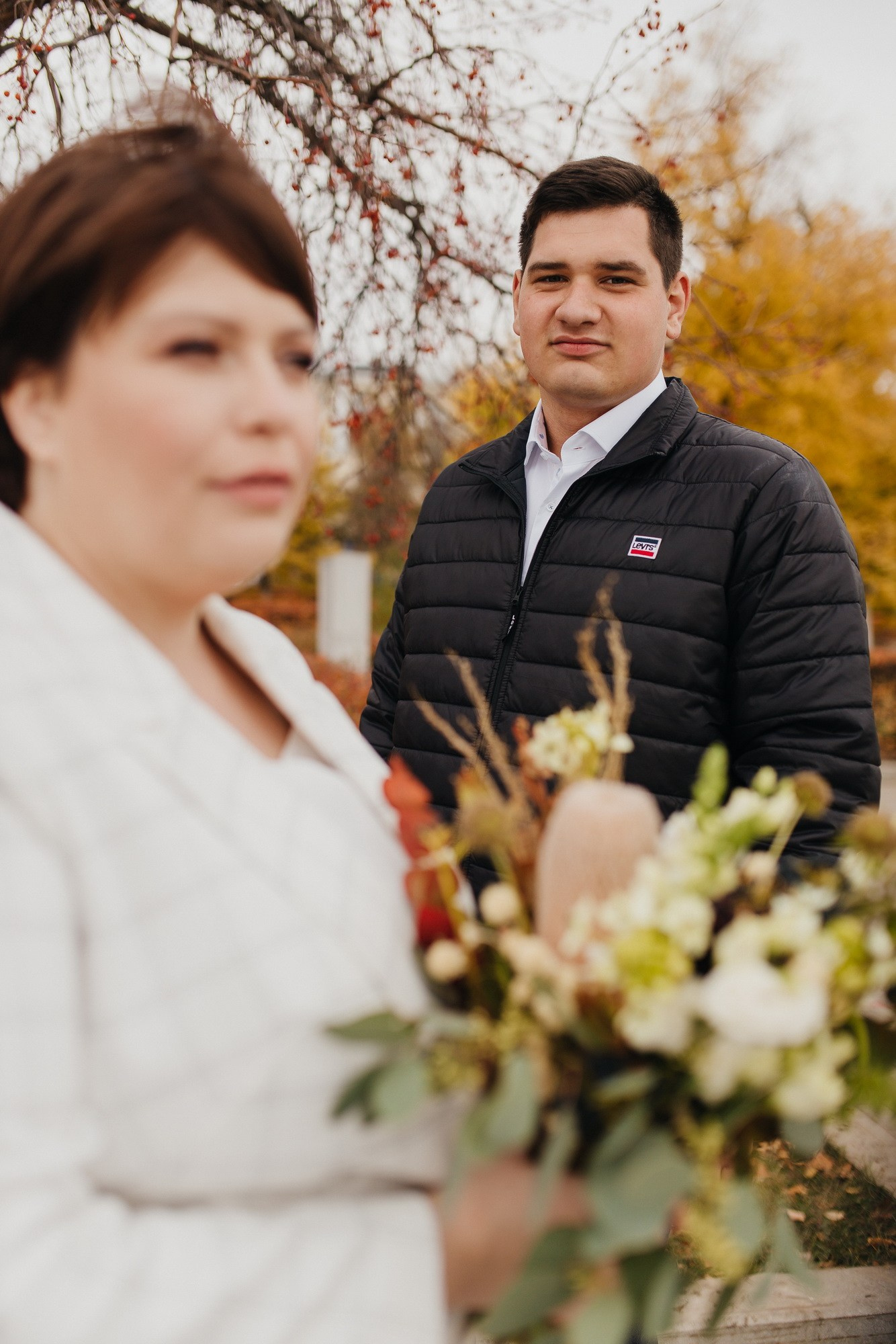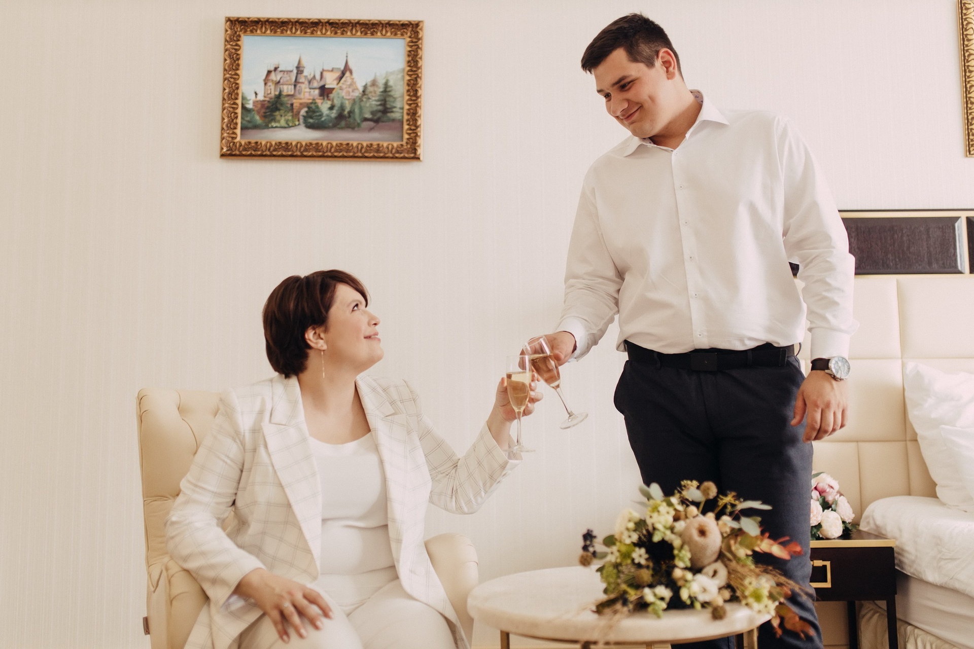 Это была камерная свадьба только для двоих. Неспешные сборы в отеле, торжественная роспись и маленькая прогулка по осенней набережной.